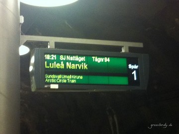 Los geht die Reise ab Flughafen Frankfurt mit Lufthansa nach Stockholm. Früh morgens, dummerweise inklusive Zeitumstellung auf deutsche Sommerzeit und darum mit etwas wenig Schlaf, steigen Moritz und ich in den Flieger und landen schon um 9.00 Uhr in Stockholm-Arlanda. Da unsere Weiterreise mit dem „Arctic Circle Train“ erst gegen Abend angesetzt ist, haben wir den ganzen Tag, um uns die Zeit in Stockholm zu vertreiben. Leider spielt das Wetter nicht so mit, es regnet in Strömen! So fällt unser Stadtbummel recht mager aus. Wir finden ein nettes kleines Café mit heißer Schoki und lecker Kuchen, laufen einmal die Fußgängerzone runter zum Bahnhof und verbringen danach noch die letzten Stunden im warmen Flughafenterminal auf bequemen Relax-Sesseln.
